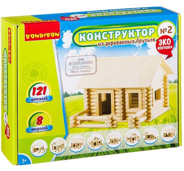 - 121 различных деревянных деталей для сборки домика;