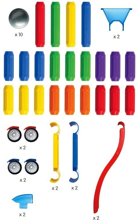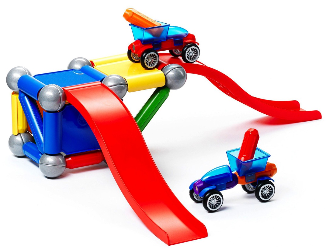 Когда уже не интересны простые развивающие игрушки, а со сложными механизмами рановато разбираться, самое время купить ребёнку магнитный конструктор SmartMax. В данном основном наборе целых 46 деталей, помимо брусков и шариков добавляются разноцветные горки, мостики, колёсики и кузовки для грузовиков. С таким арсеналом можно собрать станцую обслуживания или что-то другое. Игрушка учит внимательности, сосредоточенности. Уникальный магнитный конструктор SmartMax развивает логику и пространственное мышление.