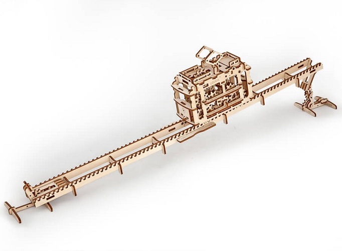 3D-паззл «Трамвай с рельсами» от UGERS – это подвижная модель, которая привидится в движение заводным механизмом или двигаясь по наклонной плоскости. Многие моделисты, хвастают своими друзьями и коллегами собранными моделями приводя их в движение, «Трамвай с рельсами» как раз одна из таких, наиболее впечатляющих моделей. Кроме этого в трамвайчике запрятана романтическая изюминка — небольшая коробочка для записок. Ну и как и все модели от UGEARS Трамвайчик прекрасно впишется в интерьер. Размер собранной модели с рельсами — 76х7х16 см.
