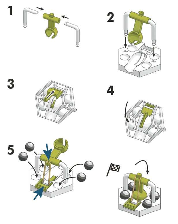 «Катапульта» - это дополнительный набор элементов, расширяющий возможности стартового набора кинетического конструктора GraviTrax. С помощью него шарик может преодолеть любое препятствие, просто перелетев его.