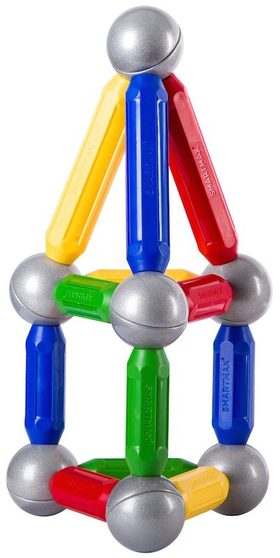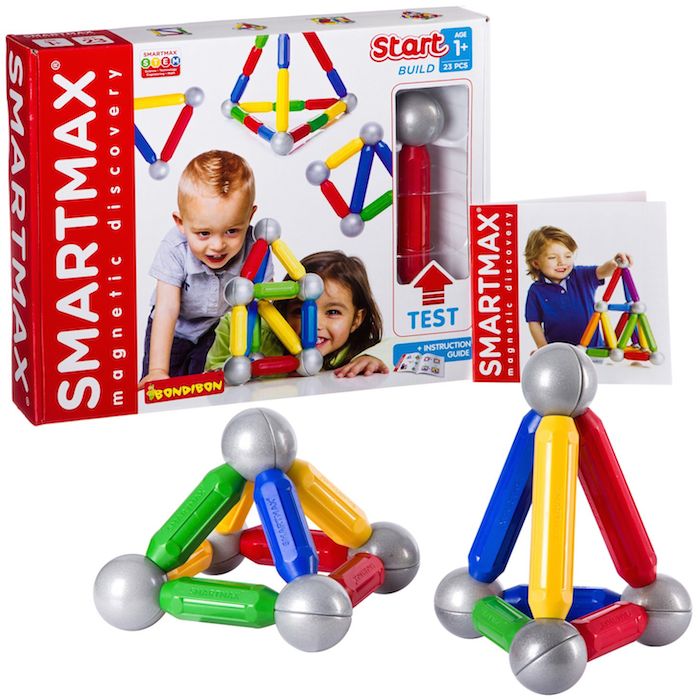 Это самый небольшой стартовый набор магнитного конструктора SmartMax. Он рассчитан на детей в возрасте от 1 года. Его детали имеют очень большой размер и выполнены из мягкой пластмассы. С помощью него ребенок начнет осваивать магию магнетизма, и сможет собрать несколько простых конструкций.