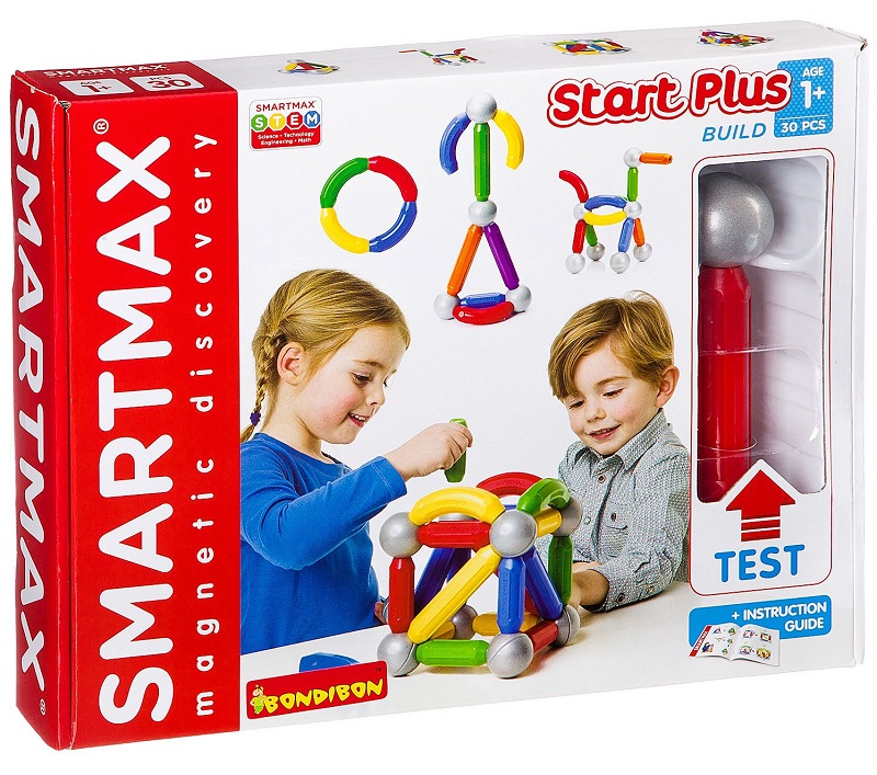 Это один из стартовых наборов магнитного конструктора SmartMax, содержащего 30 деталей. В будущем по жалению к нему можно подкупить другие наборы SmartMax, детали всех наборов подходят друг к другу. Данный конструктор рассчитан на детей в возрасте от 1 года. Его детали имеют очень большой размер и выполнены из мягкой пластмассы. К примеру: диаметр шара - 4 см, а габариты маленькой палочки - 2 х 2 х 7 см. С помощью него ребенок начнет осваивать магию магнетизма, и сможет собрать несколько несложных конструкций.