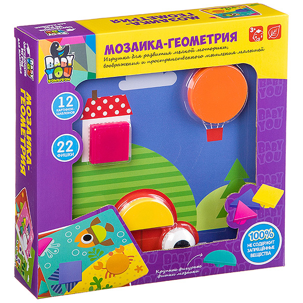 Мозаика-геометрия для малышей от марки Bondibon - это игрушка для развития творческих способностей, пространственного и логического мышления, внимания и усидчивости. Благодаря крупным ярким деталям мозаика Bondibon легко собирается и подойдет малышам от 3-х лет. Фишки выполнены в виде различных геометрических фигур. Вставляя их в ячейки нужной формы на игровом поле, ребенок соберет красочную объемную картинку. Большое разнообразие картинок-шаблонов позволит надолго сохранить интерес ребенка к мозаике.