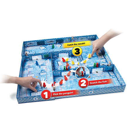 Данная игра представляет собой трёхмерное красочное поле, которое при покупке «Айс Класс» нужно собрать самому. Если внимательно изучить инструкцию, это не доставит большого труда. Просто совместите отдельные комнаты по цвету маркера и закрепите их белыми деревянными фишками. В коробке с игрой вы найдёте 4 пластмассовых фигурки пингвинов, огромное количество рыбок, специальные карточки и пропуски в школу. Всё это необходимо для того, чтобы школьная жизнь закипела невероятным образом! Хотите узнать, что самое удивительное в «Айс Класс»? Это способ передвижения фигурок. Забудьте про скучные перемещения фишек по полю, запустите своего героя ловким щелчком пальца по туловищу или голове!