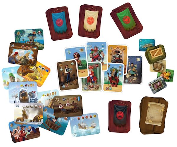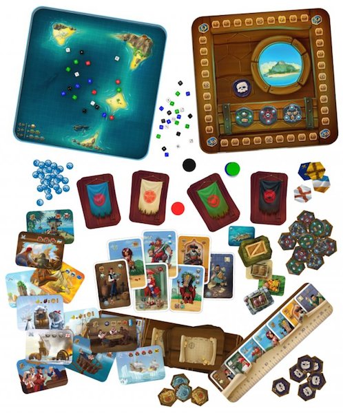 Игра представляет интерес не только из-за своего знаменитого сюжета. «Пираты 7 морей» имеет достаточно сложный, разнообразный и очень увлекательный игровой процесс. Перед вами огромное количество предметов, начиная от традиционных меток, заканчивая картами персонажей и кубиков. Отдельно стоит отметить высокое качество элементов, которое способствует долгому сроку службы игры. Сундуки с золотом являются игровой валютой. Естественно, чем больше у вас золота, тем вы могущественнее. Карты персонажей помогут развиваться, увеличивать свой флот, приумножать богатства в походах, вести торговлю на суше и многое другое. Карты добычи будут определять количество и вид награбленного имущества, которое при определённом подходе можно выменять на золото в ближайшем порту.