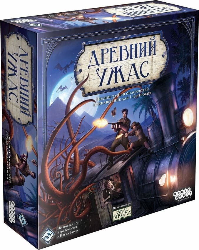 Настольная игра «Древний Ужас» представляет собой непростое, но весьма захватывающее и интересное развлечения. Прекрасно подходит для корпоративов, играть могут одновременно до 8-ми человек. Идея создания родилась, благодаря «Ужасу Аркхэма». Игроки окунуться в атмосферу той самой Вселенной, смогут проверить свои силы на пороге Апокалипсаса. Настольная игра непременно понравится всем, кто не боится бросить вызов всему Злу, а в первую очередь себе самому.