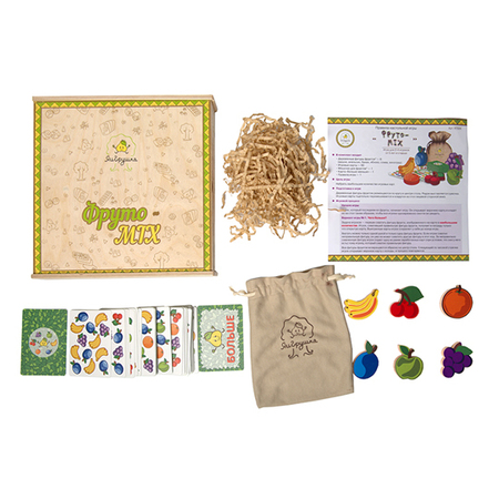 Игра от компании «ЯиГрушка» выделяется качеством исполнения. Все детали собраны в деревянной коробочке с выдвижной плотно закрывающейся крышкой. Данное условие, в отличие от картонных аналогов, поможет сохранить игру в первозданном виде долгие годы. Внутри спрятаны 6 деревянных фишек фруктов (банан, слива, апельсин, вишня, яблоко, виноград), мешочек для их хранения, а также 60 карт. Полем выступает обычный стол. Правила игры описаны в инструкции, прилагаемой к остальному содержимому коробки.