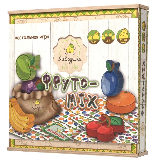 Игра с достаточно необычным названием «Фруто-MIX» готова собрать всех членов семьи за одним столом. Суть данного развлечения заключается в выборе фишки в виде того или иного фрукта. Делать это нужно быстрее других, ведь повторяющихся фигурок в игре не предусмотрено. «Фруто-MIX» рассчитана на детей от 5 лет. Она способна развить у малышей внимательность, скорость устного счёта, способствовать быстрому принятию решений. Благодаря тому, что всё действие происходит очень быстро, игроки часто ошибаются. Однако в отличие от других настольных игр, неверные ходы в «Фруто-MIX» не являются огорчением. Каждая ошибка детьми воспринимается шутливо и очень весело. Данное развлечение с лёгкостью поднимет настроение, независимо от количества участников. В игре есть 3 режима игры, которые направлены на освоение того или иного арифметического действия. В данном случае это значения «больше» или «меньше».