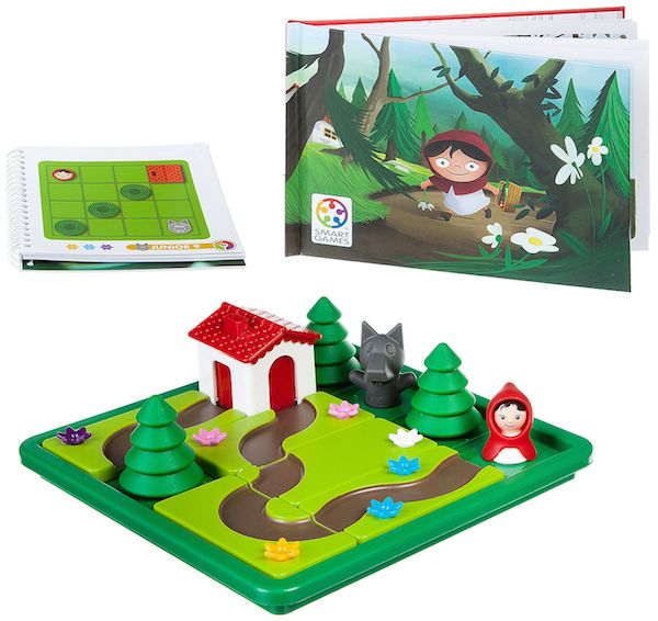 Для начала игры необходимо установить домик, ёлочки и Красную Шапочку, согласно инструкции на одной из страниц буклета. Из существующих деталей дороги ребёнок сам выбирает подходящие и устанавливает их на игровом поле. Тропинка должна соединить место положения Красной Шапочки и Домика, минуя деревья. В буклете, прилагаемом к игре, предложено 48 заданий, расположенных от простого к сложному. После 24 миссии на поле появляется волк. Его цель - попасть в дом к бабушке, а также помешать Красной Шапочке добраться до места. Сложность задачи увеличивается, так как на пути становится больше препятствий. К тому же ребёнок должен продумать и собрать сразу две тропинки. В составлении дороги могут использоваться один или несколько элементов, собирающихся по принципу пазла. Проходя одну миссию за другой, ваши дети будут становиться умнее, внимательнее и сообразительнее!