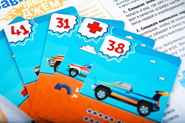 - 50 карт с числами и автомобилями;
