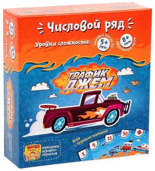 Настольная игра «Трафик-Джем» позволяет научиться в игровой форме освоить счет от 1 до 50, познакомит с такими понятиями как «интервал» и «разница». Как многие другие игры от «Банды Умников», «Трафик Джек» имеет несколько вариантов правил игры, рассчитанные на игроков 5 (со счетов до 10) и 8 (со счетом до 50) лет.