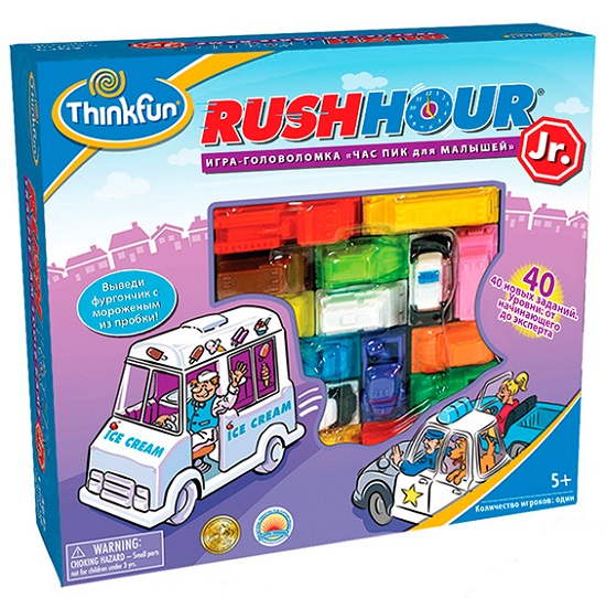 Популярная головоломка «Час пик или Парковка (Rush Hour)» от компании ThinkFun вышла в новом исполнении – Junior (для малышей). Фактически, это та же игра, адаптированная для 5-летних игроков: