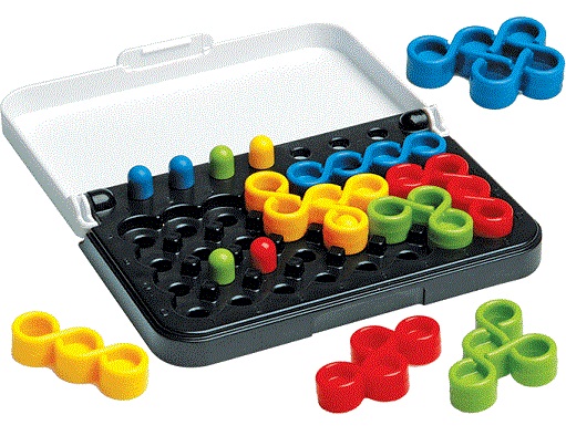 Все закрученные детали нужно разложить на игровом поле, а затем расставить на свои места цветные фишки. Теперь, чтобы собрать свою конструкцию, придется «потанцевать» с деталями. Ведь на фишку можно класть деталь, только если она того же цвета, а отверстие в ней точно подходит к фишке. В зависимости от уровня сложности головоломки, зависит и количество деталей. Соответственно, чем меньше деталей, тем проще задача.