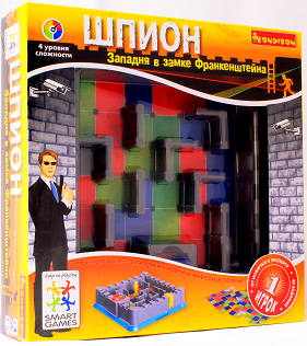 Шпион становится невидимой тенью, скользя по стенам, незаметно перебирается из одного укромного уголка в другой, прячась от видеокамер. Но на новом этаже поджидают все более сложные лабиринты. С каждым шагом он рискует попасть на сектор «опасного» цвета и услышать завывания сирен... В игре существует четыре уровня сложности с 46 вариантами раскладок, но только одним правильным путем из лабиринта. Однако это не так легко, как кажется! К каждой игре есть правильные решения для любого этажа, но неужели они пригодятся истинному юному шпиону? Простор воображения именно то, что подарит вашему ребенку головоломка «Шпион».