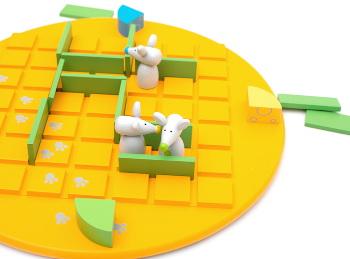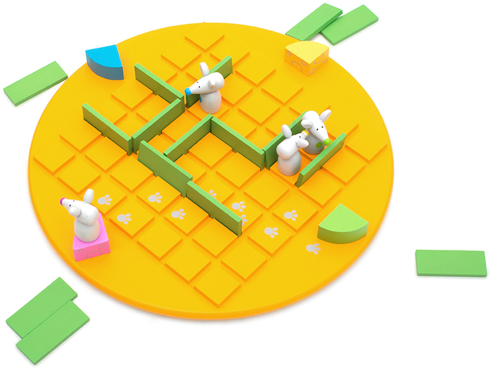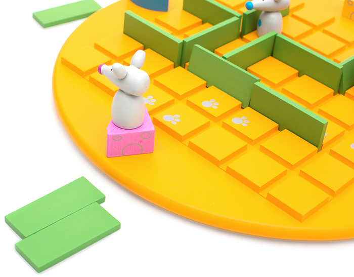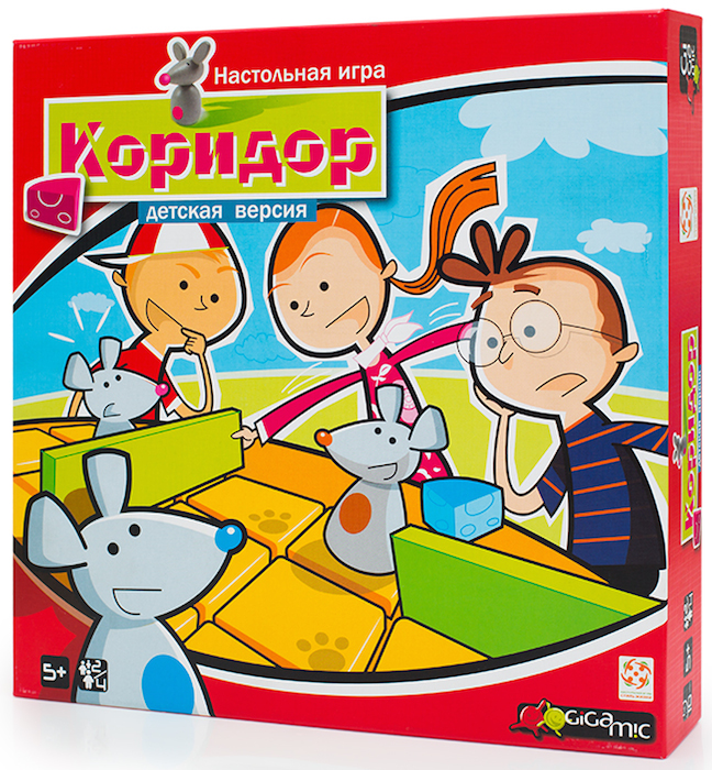 «Коридор для детей» - это адаптированная для детей версия популярной настольной игры «Коридор». В ней уменьшен размер игрового поля (7 на 7, вместо 9 на 9 в базовой версии), игровые фишки заменены на симпатичных мышек, а для того, чтобы маленькие игроки не запутались с конечным пунктом своего маршрута – его можно обозначить кусочком сыра, соответствующего цвету мышки.