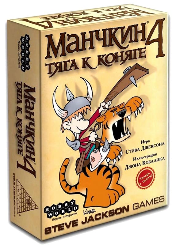 «Манчкин 4. Тяга к коняге» - это новое дополнение к основному «Манчкину» разнообразит вашу любимую игру и приятно удивит новыми карточками, с помощью которых вы можете одолеть жуткого монстра сидя верхом на какой-нибудь невиданной зверюшке. Теперь вам не надо упрашивать другого игрока идти в бой, а стоит только заполучить карточку с наёмничком. Этот новый персонаж станет для вас и другом, и защитником. Снарядите его как своего Манчкина, дайте в руки оружие и вперед – теперь вы отличная команда, и вам «по зубам» любой монстр! Кстати, вы можете взять к себе двух наёмничков - в этой версии игры вы можете использовать «читы». Не честно? Зато весело, и приятно когда без особого труда получаешь заветный 10 уровень!