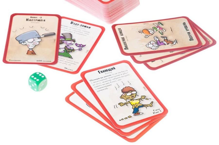 Теперь ваша цель – это найти за «Дверьми» еду в виде все тех же человекоподобных монстров. За каждого съеденного также даются уровни, которых к концу игры должно быть в сумме 10, чтобы стать зомби-победителем. Каждый ходячий мертвец-Манчкин обладает тремя характеристиками, которые он может заполучить, сыграв определенной картой, например, вы можете стать «Мощным Атомным зомби 6-го уровня» с Рукой и ногой. Да, с таким зомби можно любую «Дверь» выбивать, не съест, так понадкусывает. Но не забывай про своих оппонентов, ведь они тоже жаждут не только набить животы, но и избавиться от тебя, поэтому могут сыграть картой помощи затворному человеку и вручить ему, например, дробовик, это конечно неприятно, но проходимо. Ведь ты вправе обратиться к другому игроку и за Когти сияния попросить его присоединиться к себе. Вот такие голодные игры ждут вас в этой новой игре «Манчкин Зомби».