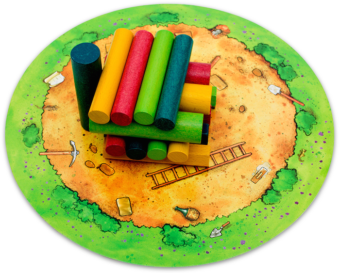 Каждый игрок-строитель обладает своим комплектом строительного материала – набором колонн разного размера одного цвета. Каждая колонна имеет свою стоимость от 1 до 3 очков. Игрок, колонны которого с наибольшей суммарной стоимостью стоят на верхнем уровне здания, становится обладателем Печати Мастера Строительства. Участники игры перемещают свои колонны по очереди, а если у кого-то не получается перенести колонну без разрушения здания, то он устанавливает новое перекрытие. Игра заканчивается если Вилла Палетти разрушилась, либо тогда, когда все перекрытия уложены и нельзя перенести ни одну из колонн без причинения разрушения здания. Победителем становиться тот игрок, у кого на руках находится Печать Мастера строительства.