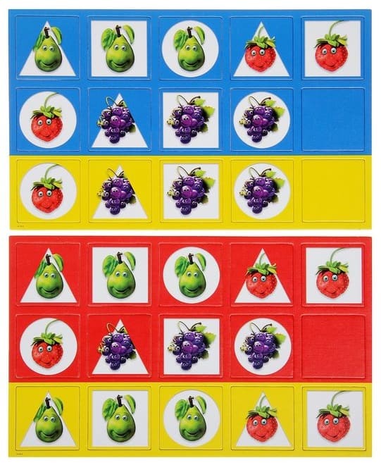 В ходе игрового процесса необходимо располагать предложенные карточки с одинаковыми изображениями на поле. Трио может состоять из трех одинаковых фруктов, форм, цветов и ягод, которые могут располагаться вертикально, горизонтально или же по диагонали. За собранный ряд участник получает жетон. Игра завершается, как только все поля оказываются занятыми, при этом остается три неиспользованные карточки. Победителем объявляется участник, который наберет большее количество поощрительных жетонов.