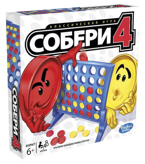 «Собери 4» – классическая настольная игра для двоих, которая давно стала популярной во всем мире. Она прекрасно тренирует внимательность, пространственное воображение и логику. Благодаря простым правилам, «Собери 4» подходит для игры детям от 6 лет, а красивая упаковка и прекрасное исполнение деталей делает ее прекрасным подарком как детям так и взрослым.