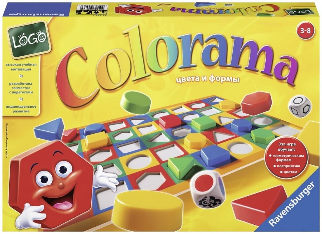 Правила игры «Колорама» легко усваиваются детьми от 3 лет. В начале игры разделите поровну между участниками разноцветные геометрические формы, в середину стола установите поле. Ходы делаются по очереди, первым ходит тот, у кого быстрее других будет день рождение. В свой ход игрок бросает 2 кубика, один кубик показывает цвет, другой форму фигуры. Если у игрока есть фигура, которая по цвету и форме соответствует значениям на кубиках, он выкладывает ее на игровое поле. Если такой фигуры не оказалось – ход переходит к следующему игроку по часовой стрелке. Побеждает в игре тот, кто первым выложит на поле свои фигуры.