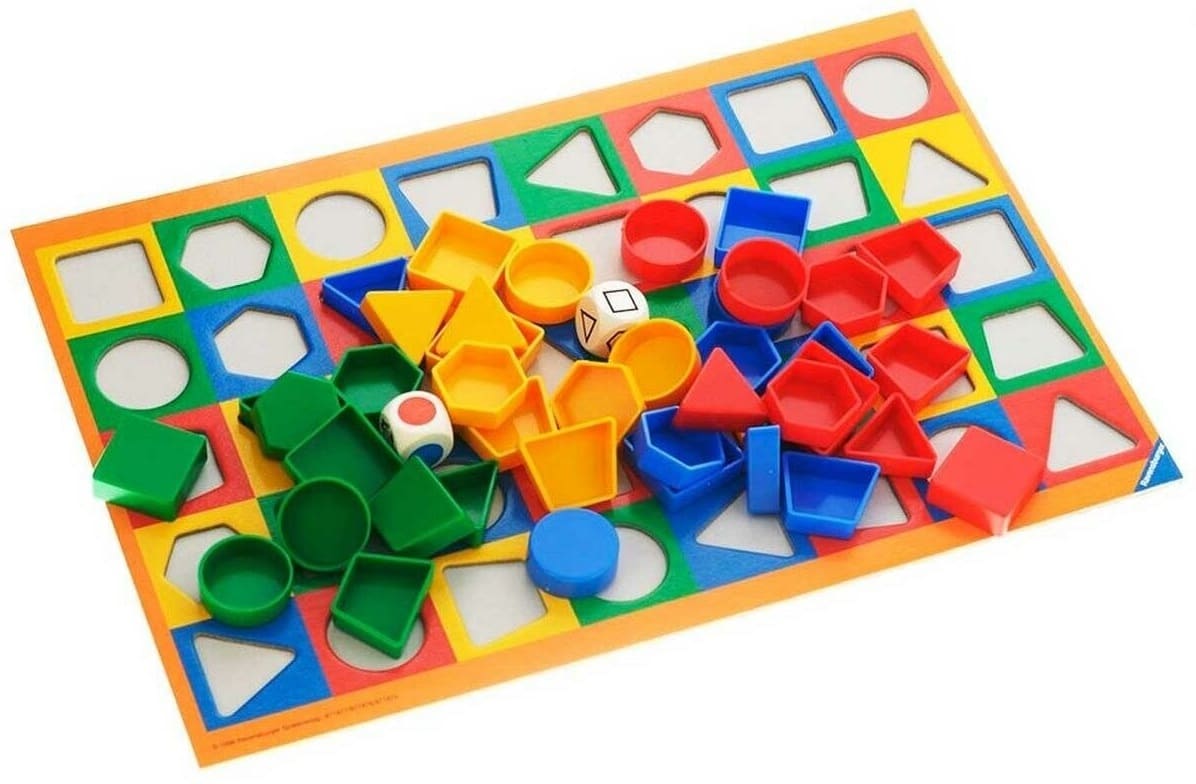 Игра представляет разноцветное игровое поле с прорезями под геометрические фигуры и набор разноцветных фигур, которыми нужно заполнять пазы на поле. Порядок выкладывания фигур на игровое поле определяют кубики.