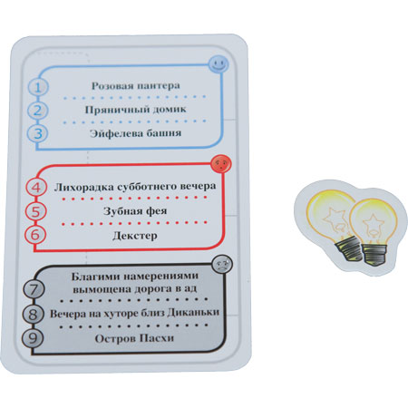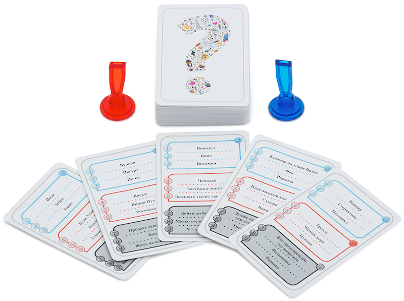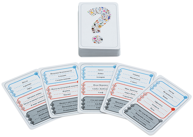 - 110 карт, содержащих по 9 слов или фраз разбитых на 3 уровня сложности;