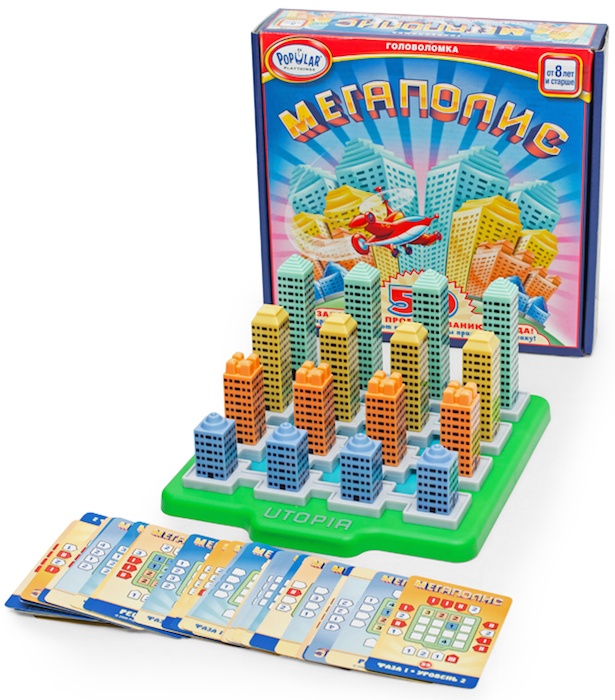 «Мегаполис» - это судоку для детей. Яркая и объёмная головоломка в увлекательной игровой форме учит проектировать объекты различной сложности. Развлечение для 1 игрока развивает пространственное мышление, помогает вырабатывать стратегию. Ваш ребёнок учится мыслить логически, находить решение в безвыходной на первый взгляд ситуации. Прочное крепление элементов на игровом поле и оригинальное оформление игры будут радовать долгое время. За счёт небольшого формата головоломку «Мегаполис» удобно брать с собой в дальнюю поездку и возводить целые города, имея под рукой лишь игру и ровную горизонтальную поверхность!