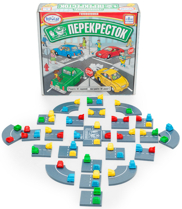 Игра «Перекрёсток» максимально приближена к реальности: пробки на дорогах, сложные развязки и, конечно, забитые перекрёстки! Каждый может стать строителем дорог, вот уникальность головоломки состоит в том, что полотна поставляются уже с машинами! На одной части располагается передняя половинка транспортного средства, на другой – задняя. Нужно не просто собрать красные, синие, зелёные и жёлтые автомобили, а ещё и воссоздать дорожную ситуацию. Головоломка для детей от 8-ми лет может увлечь ребятишек и младшего возраста, ведь поиграть в машинки вряд ли откажется любой мальчишка. Игра здорово помогает развить пространственное мышление и логику. А разноцветные детали ребята будут собирать пальчиками очень аккуратно, поэтому большой плюс и для развития мелкой моторики!