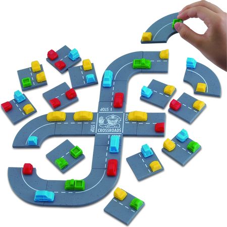 Основная часть игры – перекрёсток, но в первых более лёгких заданиях придётся обходиться без этой детали. Помимо него вы найдёте 23 элемента дорожного полотна – 6 поворотов и 17 прямых участков, на каждом из которых располагаются половинки разных по цвету машинок. Игроку предлагается 30 заданий с головоломками, уровень сложности возрастает постепенно. Все части дороги хорошо выполнены из прочного пластика, поэтому нет необходимости переживать за сохранность игры в руках озорников. Для раскладки головоломки «Перекрёсток» требуется помимо коробки с элементами и заданий ещё и ровная поверхность достаточной площади. Больше всего подойдёт пол или стол, поэтому не в любой поездке игра станет верным спутником. На составление одной схемы уйдет примерно 10-20 минут, в зависимости от навыков игрока.