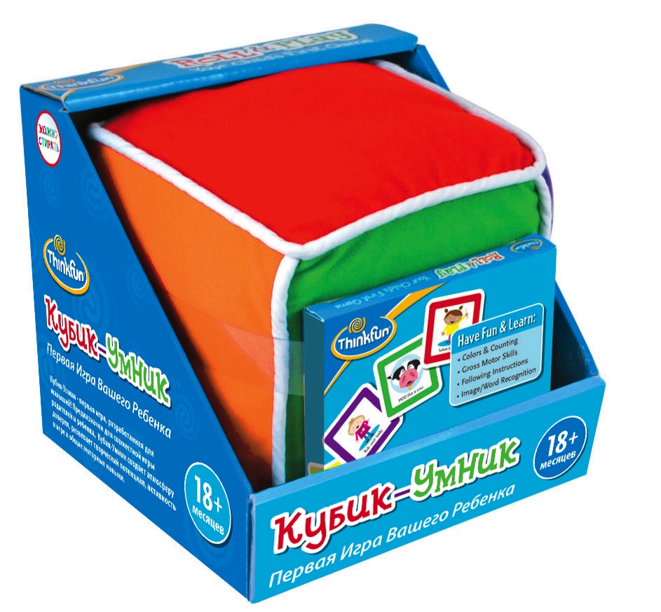 Активная обучающая игра является находкой для заботливых и любящих родителей, которые хотят, чтобы их малыши выросли умненькими и сообразительными. Игра «Кубик-умник» представлена производителем Thinkfun, который создаёт оригинальные и очень полезные развивашки для детей. С какого возраста карапузы могут играть вместе с вами в настольные игры? Думаете с 3 лет? Вовсе нет! В 12-18 месяцев малышу уже можно учить цвета, различать эмоции, самому стараться показывать действиями разные состояния. Игра позволяет весело проводить время, научить детей и родителей доверять друг другу. Малыш в непринуждённой форме развивает логику, мелкую моторику. Он быстрее и эффективнее учится произносить своё имя. Согласно отзывам родителей, «Кубик-Умник» с лёгкостью заменяет сразу несколько развивающих игр. Он помогает успокоить и завлечь расстроенного кроху. Выбирая подарок малышу и его родителям, обратите внимание на оригинальное создание Thinkfun!