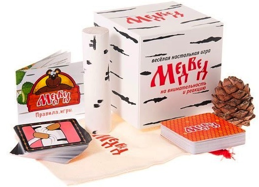 Что мы знаем о Медведях? Они неповоротливые, неуклюжие, любят мёд и всё?! А вот и нет, особенно образованные из них способны изъясняться по-французски, демонстрировать исключительное чувство юмора и проявлять смекалку. «Медвед» - это динамичная и увлекательная настольная игра на быстроту реакции, внимательность и находчивость. Можно стать обладателем карт противника или в один момент передать все свои ценности на дуэли. Чем дальше, тем напряжённее темп, тем требуется больше внимательности от игроков. Игра является отличным поводом весело провести семейный вечер, непринуждённо корпоратив и даже оригинально молодёжную вечеринку. Мешочек для принадлежностей упростит транспортировку игры в любое место, куда бы вы не отправились.