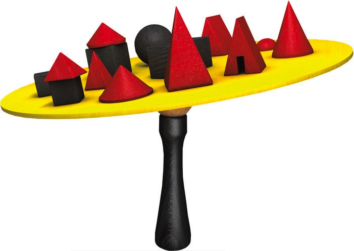 Игра одинаково хорошо подходит для семейного вечера или шумной вечеринки. В любом случае она приносит только радость, безудержный смех и веселье. Вся суть игры держится на подставке и пробковом шарике, на которые водружён жёлтый яркий диск. На нём хаотично расставлены красные и чёрные фигуры. Задача каждого игрока - сохранить равновесие и выбрать нужный конус или квадрат. Развлечение понравится и 6-ти леткам, и их родителям. Оно хорошо развивает пространственное мышление, логику и помогает выстраивать беспроигрышные стратегические планы. Поэтому одной ловкостью рук здесь не обойтись! Самым маленьким игрокам полезно будет перебирать элементы, пусть и вышедшие из игры. Это хорошо развивает мелкую моторику, помогает гармоничному и правильному формированию речи.