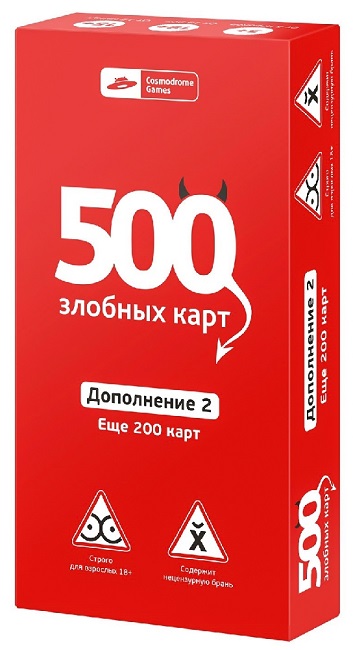 Это второе дополнение к игре 500 злобных карт, содержащая 200 новых карточек со смешными вопросами и ответами, которые дают возможность составить множество новых комбинаций.