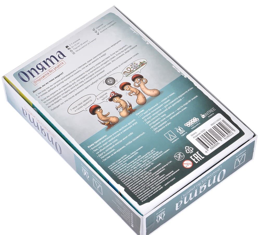 Как бы сказали психологи про настольную игру Опята — грамотное сочетание вербальных и невербальных коммуникаций, вызывающих положительные эмоции. Ну а если по простому, это очень веселая игра для компаний от 3 до 7 человек на разгадывание слов, которая что-то позаимствовала у «Активити» и «Крокодила», что-то у «Алиас», а что-то у «Плохого телефона». В результате получилась взрывная смесь основанная на разнообразных коммуникациях, которая развеселит даже самого закоренелого сноба.