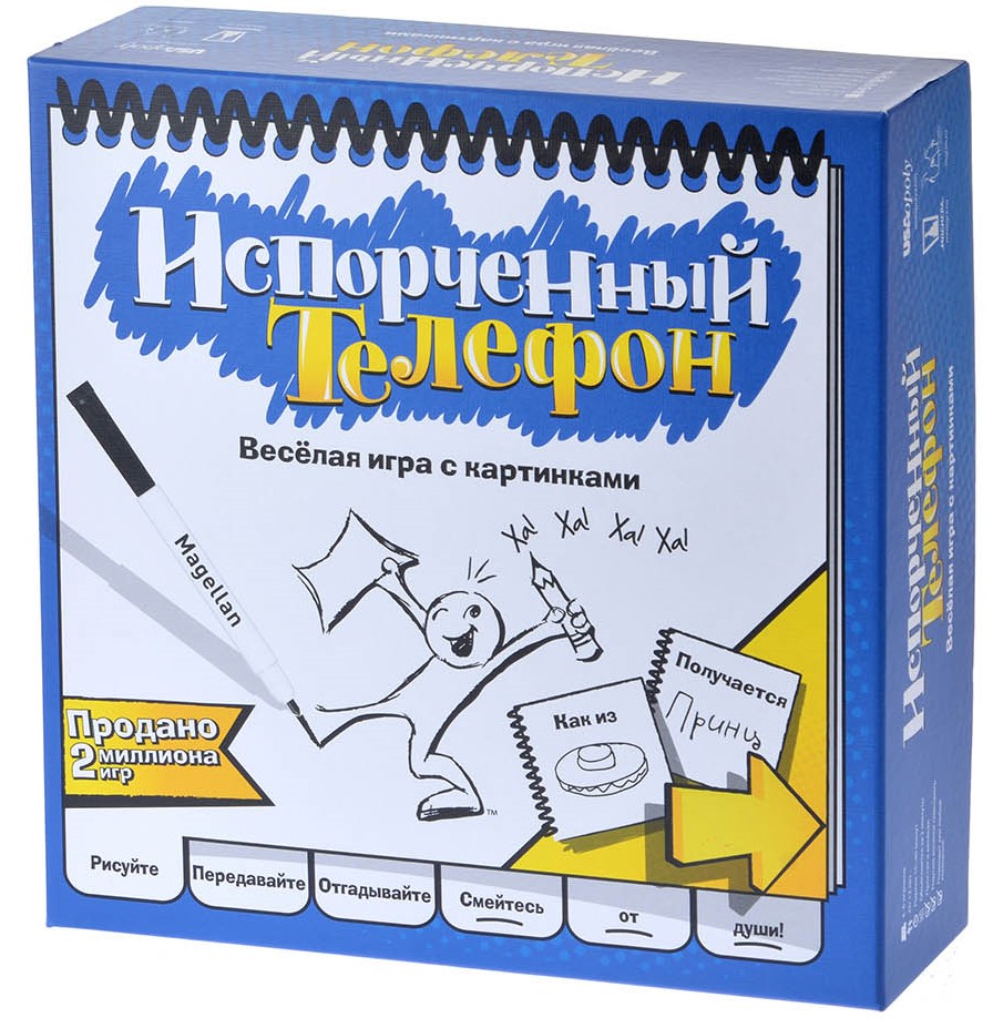 Настольная игра «Сломанный / Испорченный телефон» (Telestrations) — это веселая забава для веселой компании от 4 до 8 человек или семейного досуга с игроками старше 12 лет. Производитель игры позаботился обо всем чтобы игра шла динамична и с комфортом, в ней не надо самим придумывать слова - на карточках их больше 1700, а специальная атрибутика игры — стирающиеся маркеры, салфетки и специальные пластиковые блокноты, позволяют пользоваться ей долгое время.