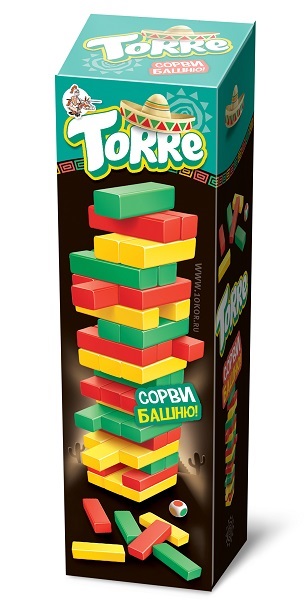 Настольная игра Торре Сорви башню - это достойный ответ на заграничную игру Дженга от отечественного издателя Десятое королевство. Ее основное отличие - цветные брусочки (желтые, зеленые, красные) и игровой кубик с теми же цветами на гранях. Как и в классической Дженге, в игре Торре 54 брусочка, которые укладываются в 18 рядов (по 3 брусочка в каждом). Ну и конечно, радует то, что при высоком подарочном качестве изготовления игра имеет невысокую цену.
