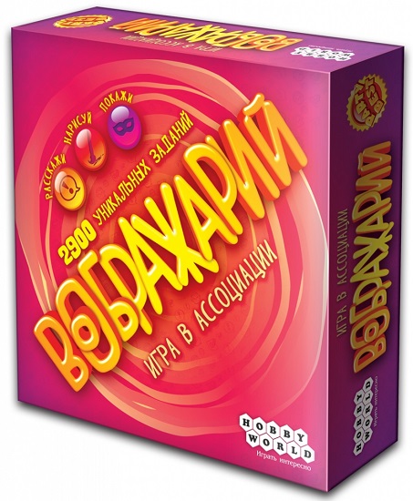 «Воорбажарий» - это бюджетная настольная игра на ассоциации от отечественного издателя «Мир Хобби». Почему бюджетная? Да просто она стоит в 2 раза меньше своего европейского аналога, хита «Активити». Удешевление произошло за счет отечественного производства и отсутствия игрового поля. Главный принцип игры остался неизменным — нужно объяснять слова с карточек-заданий другим участникам с помощью трех способов — рассказа, рисунка, и представления (пантомимы). Игры на ассоциации очень популярны на вечеринках, и в условиях ограниченного бюджета, «Воображарий» - это лучший вариант. Игра постоянно обновляется, представленная в настоящий момент версия игры - это уже третье издание Воображария.