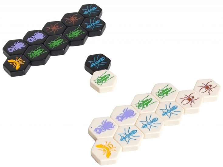 - 22 фишки с насекомыми (11 белых и 11 черных);