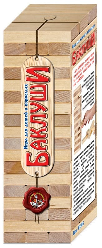Деревянные элементы настольной игры Баклуши позволят соорудить самые необычные архитектурные постройки. В комплекте имеется 54 блока и картонный уголок, который поможет сделать здание максимально ровным и устойчивым. Располагая элементы различными способами можно создать 18 уровней. И это не предел! В дальнейшем высота башни Дженги сможет вырасти в два раза. Чтобы такое огромное сооружение сохранило целостность необходимо действовать грамотно и аккуратно. Для того чтобы стать победителем в схватке с другим игроком, следует заранее потренироваться.