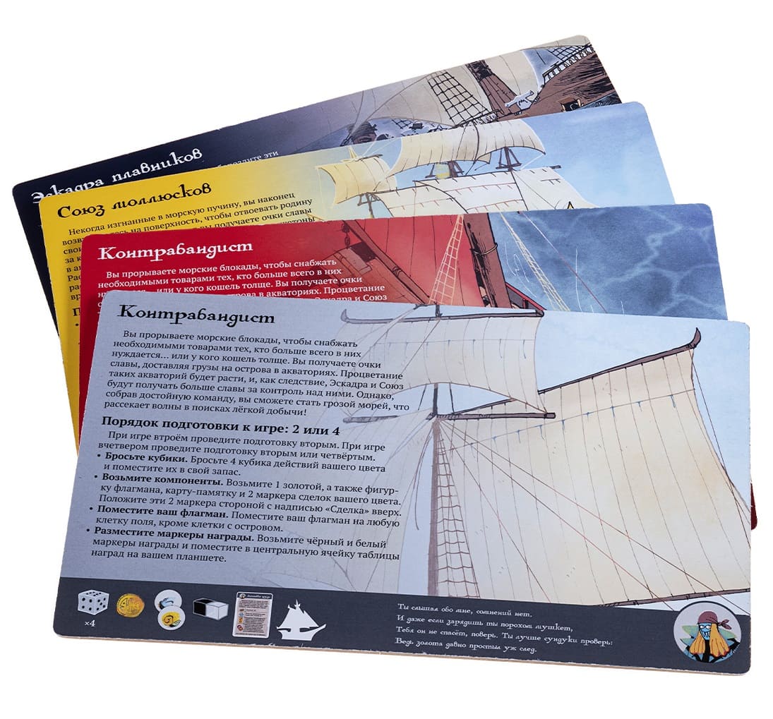 - 4 карманные лоции (памятки игроков);