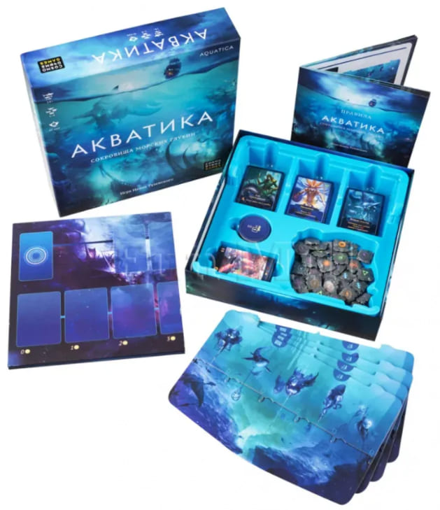 «Акватика» - семейная настольная игра-евростратегия, в которой сочетаются продвинутые игровые механики, простые в освоении правила и незатянутые по времени партии. Добавьте к этому красивое атмосферное оформление, и Вы получите идеальный подарок для семей, увлекающихся настольными играми.