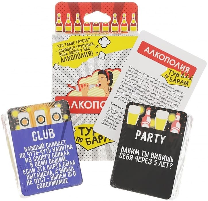 «Алкополия. Тур по барам» - это простая и непринужденная игра для веселой взрослой компании, которые решили скоротать время за рюмкой чая. Хватит пить просто так, давайте это делать со смыслом!