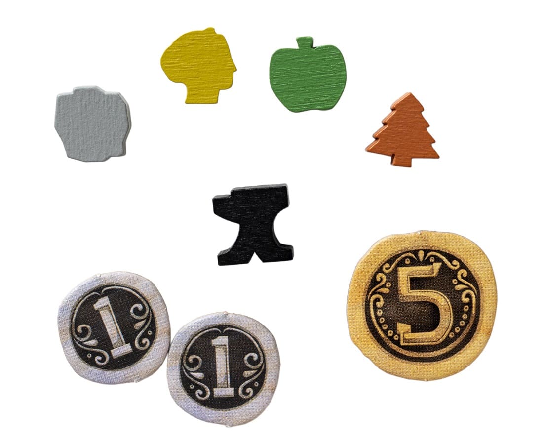 - 80 фишек ресурсов;