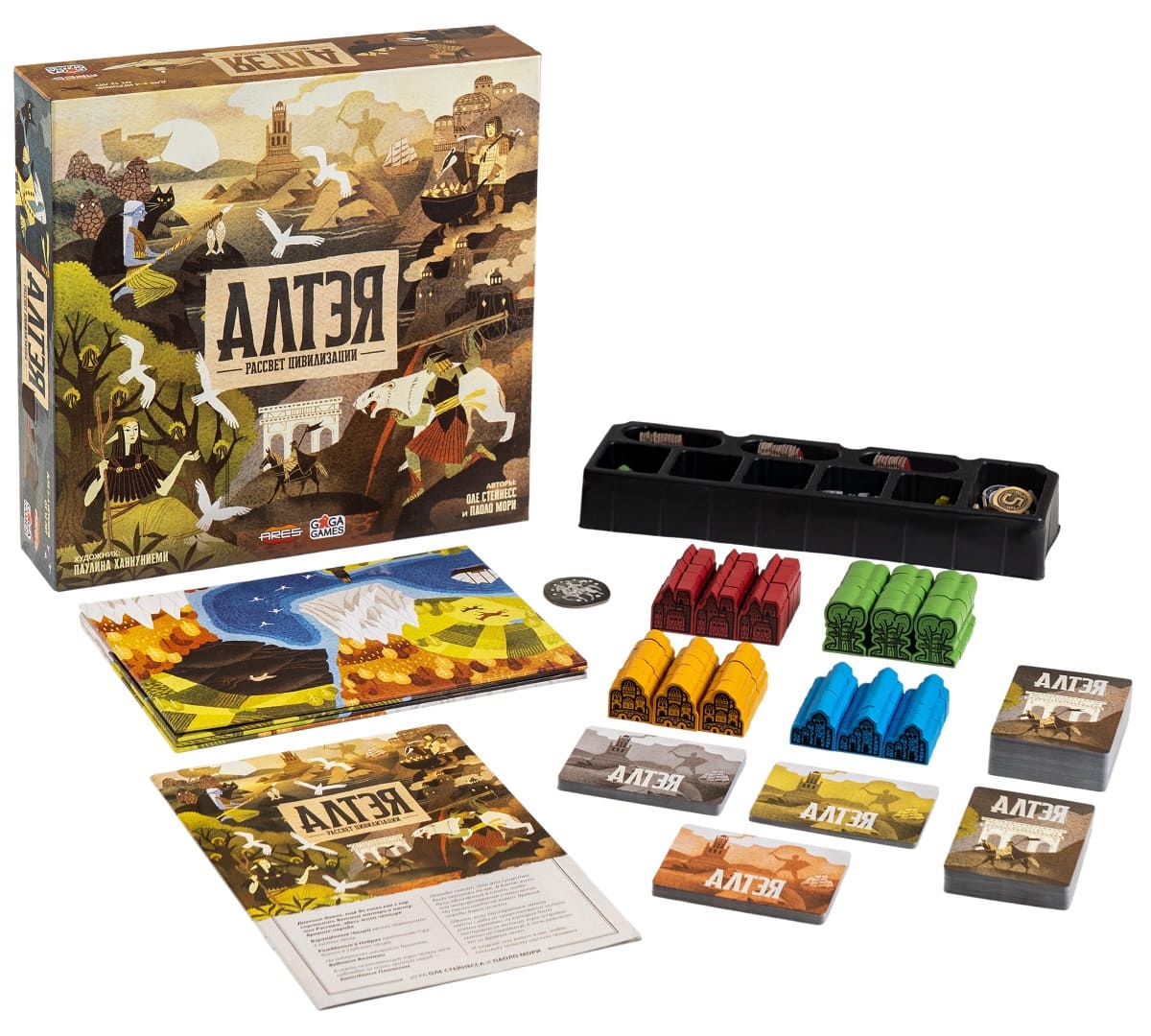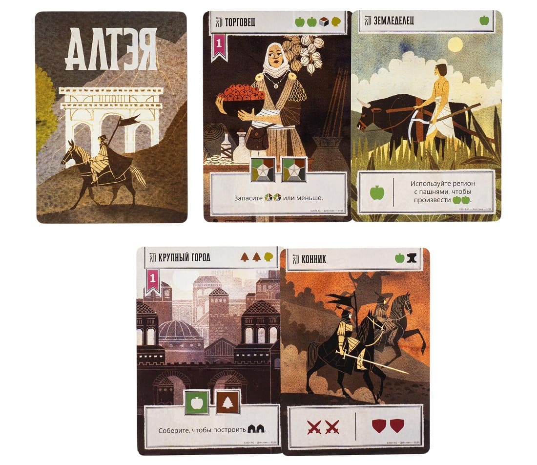 «Алтэя. Рассвет Цивилизации» - стратегическая настольная игра, сочетающая в себе механики колодостроя, развития цивилизаций и контроля территорий. Ее участникам предстоит взять на себя управление одной из четырех ассиметричных фракций, имеющих свои собственные колоды и стили игры, и привести ее к процветанию.