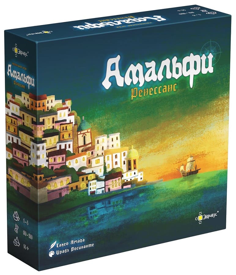 «Амальфи. Ренессанс» — это стратегическая настольная игра японского геймдизайнера Такео Ямады, переизданная в 2020 году с добавлением новых механик. Ее участникам предстоит в роли купцов времен ренессанса вернуть некогда утраченную славу заброшенному портовому городу Амальфи.