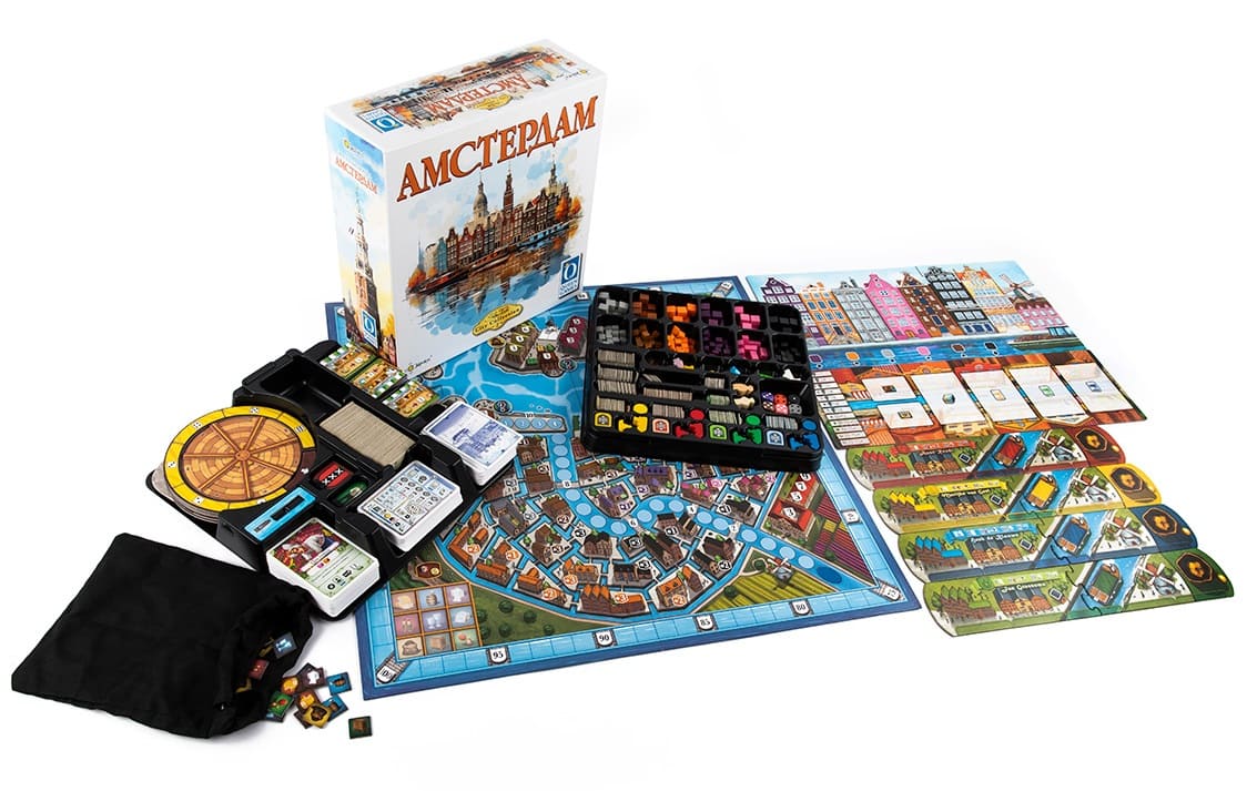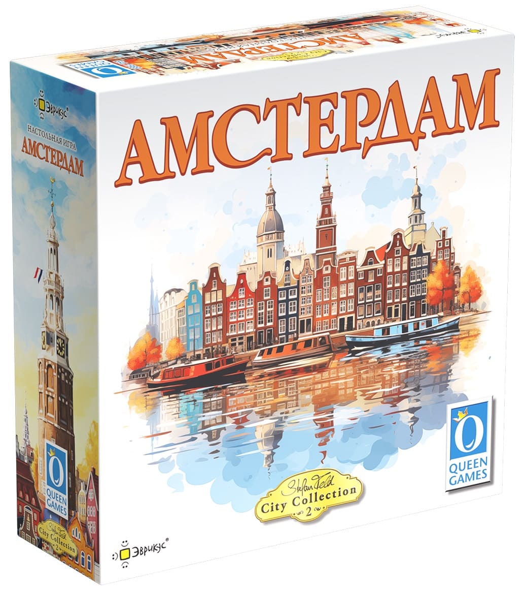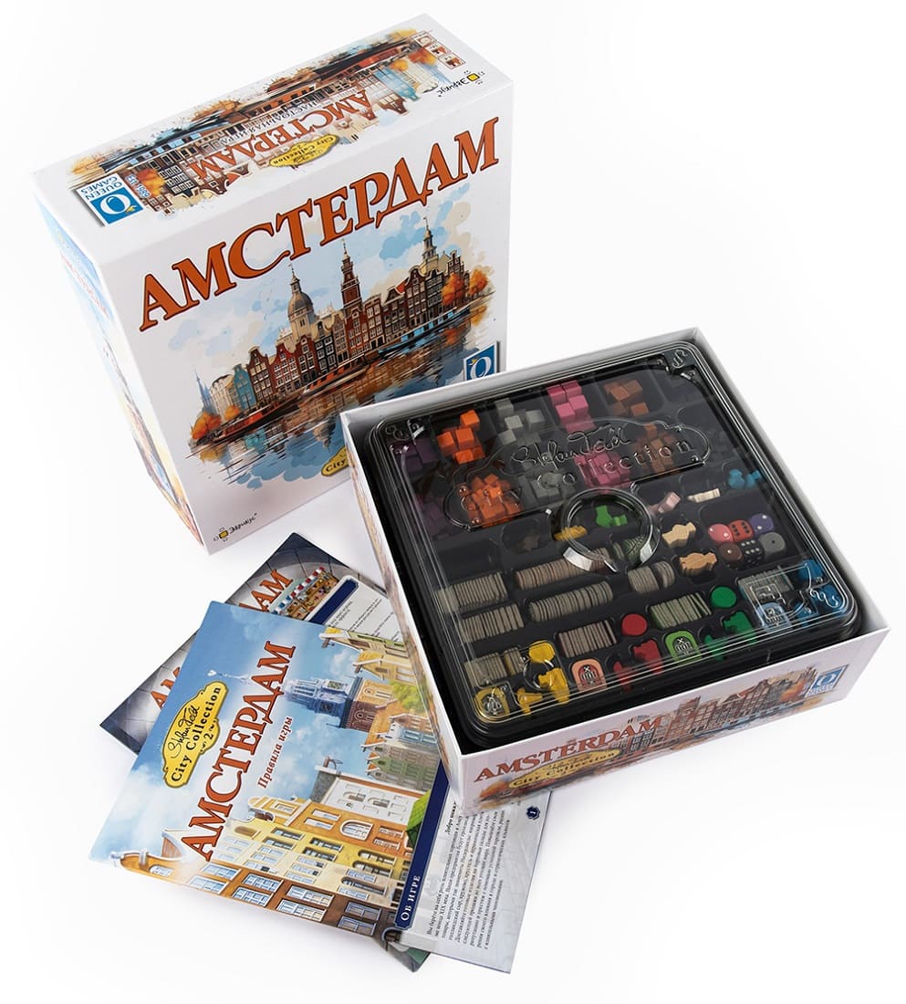 «Амстердам» — вторая игра серии «Городская коллекция» от именитого гейм-дизайнера Штефана Фельда. Она сочетает в себе глубокий геймплей и интересные механики. Одним из ключевых элементов игры является необычное использование ронделя для получения ресурсов: большую часть ресурсов вы получите не сразу, а через какое-то количество раундов. Другая немаловажная механика игры - это использование карт наиболее эффективным образом для получения дополнительных ресурсов, бонусов и победных очков. Без тактики и плана в этой игре победить почти невозможно. Автор игры считает «Амстердам» одной из самых непростых игр всей серии.
