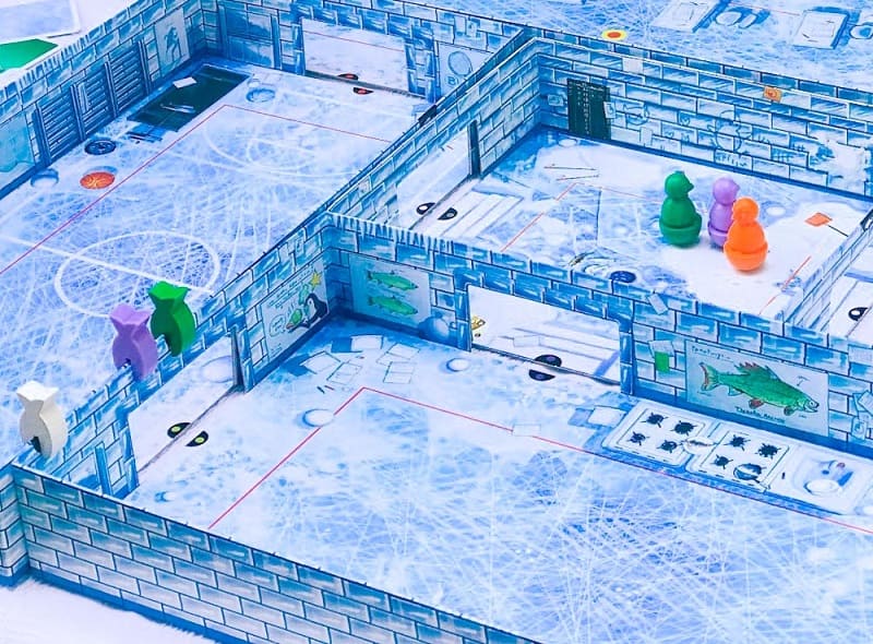 Перед началом игры необходимо построить школьные коридоры, которые образуются путем соединения нескольких коробок, вложенных в друг друга. Над дверными проемами размещаются разноцветные фишки рыбешек. Каждый игрок получает в управление фигурку пингвина своего цвета, и передвигает его по коридорам щелкая по ней пальцем. Благодаря этому пингвинята могут выделывать различные пируэты, проскальзывать через несколько помещений, и даже перепрыгивать через стены.