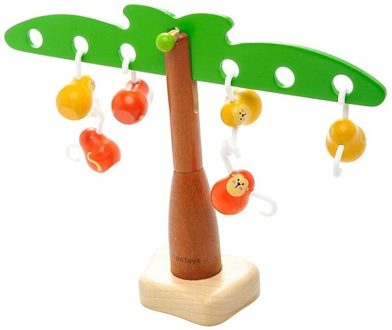 Игра "Балансирующие обезьянки" знакомит малышей с плечевыми весами. Задача игрока - расположить обезьянок на ветках весов так, чтобы они сохраняли равновесие. Для этого необходимо правильно сопоставить их количество, а также длину плеча.