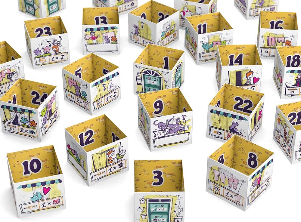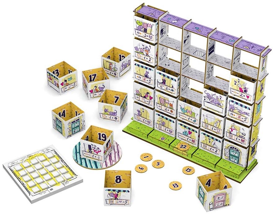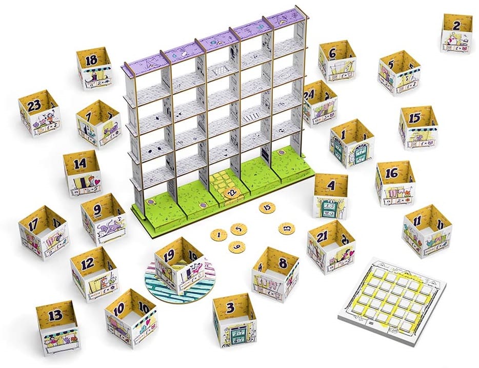 Делая ходы по очереди игроки размещают кубики-квартиры в каркас дома размер 5х5. В свой ход игрок выбирает какие стороны достанутся ему, а какие сопернику. Вот только где именно будет размещена квартира решает уже соперник. Цель игроков - располагать жильцов так, чтобы выполнить как можно больше условий на обращенных к ним балконах. Кто сделает это лучше и наберет больше очков - станет победителем.